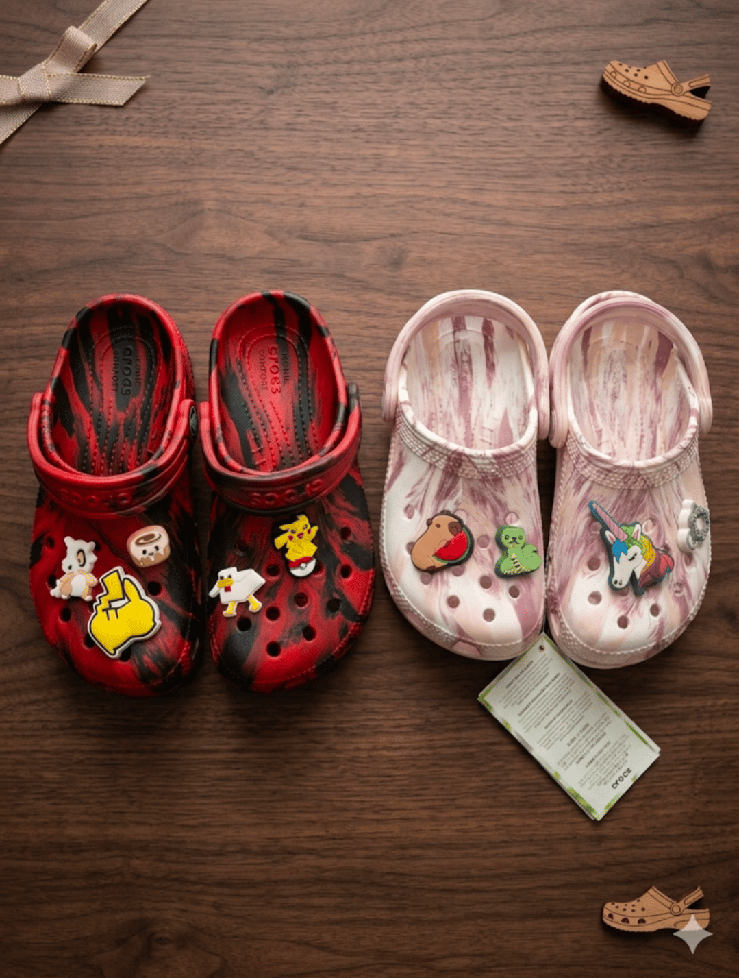 Investimento: $49.01 por dois pares (incluindo Jibbitz de Pokémon e unicórnios).